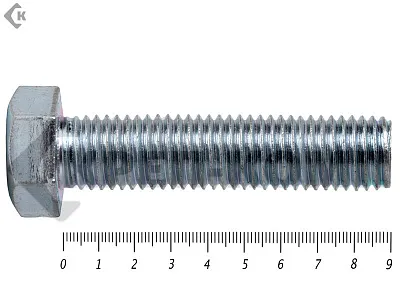 Болт DIN 933 с полной резьбой и шестигранной головкой, размер резьбы от М3 до М64, длина болта от 5 до 340 мм, класс точности A, B. Болты DIN 933 применяются для соединения и крепления деталей и конструкций в строительстве и машиностроении. Они имеют шестигранную головку под ключ, полную резьбу, и имеют оцинкованное покрытие, для лучшей коррозийной стойкости.