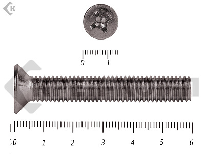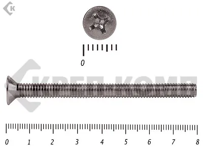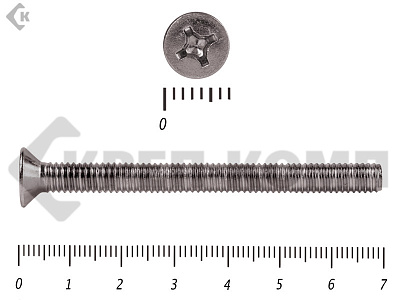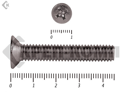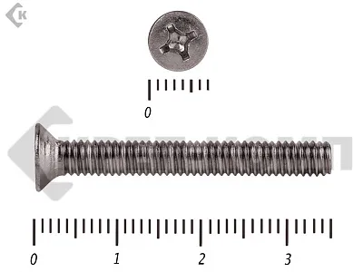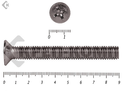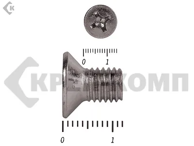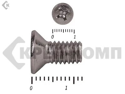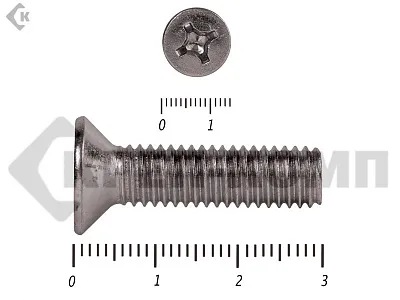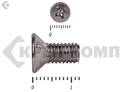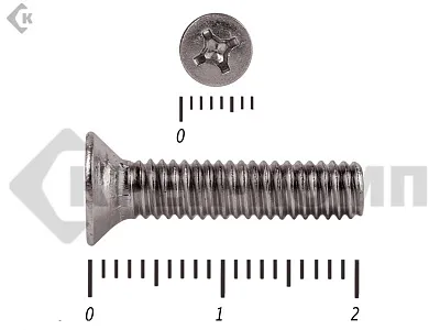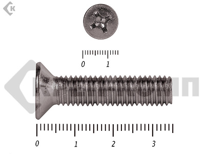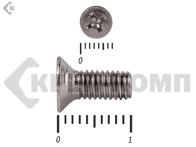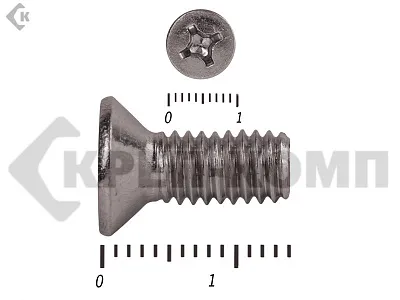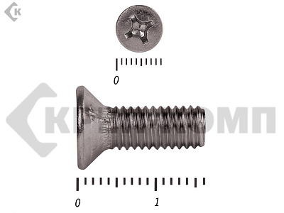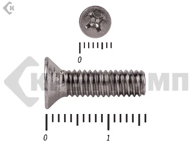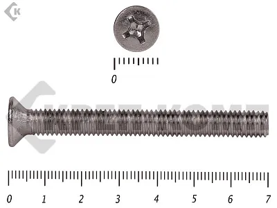 Винт DIN 965 из нержавейки с потайной головкой с крестообразным шлицем и полной резьбой. Данные винты выполнены из нержавеющей стали, благодаря чему, могут использоваться и в агрессивных средах, с повышенной влажностью. Винты нержавеющие DIN 965 используются в строительстве, машиностроении, промышленных и производственных отраслях совместно с шайбами, гайками соответствующих размеров.